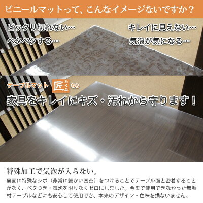 【面取りオプション付き】 テーブルマット匠(たくみ) 角型(3mm厚) 135×90cmまで 透明 テーブルマット テーブルクロス デスクマット 防縮 アルコール